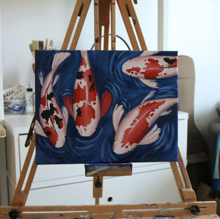 A trio of koi fish swimming through the three stages of life, they journey through the currents of birth, marriage, and death, each experience shaping them and leaving its marks on each of them. As they navigate the depths of the water, they discover their true identities and emerge renewed, ready to face the next phase of their journey, transcending into their eternal souls.